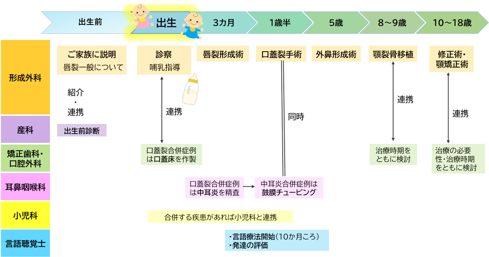チーム医療が重要となるため、矯正歯科医・言語聴覚士・小児科医・耳鼻咽喉科医・産婦人科医などとも必要に応じて連携して治療を行います。