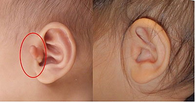 生まれつき耳の前や頬、頸部に小さな耳たぶのような隆起を生じたものです。発生頻度は100人に1人程度と考えられています。