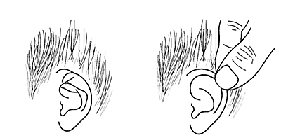 図2 埋没耳は用手的に引き出すと、正常な耳の形になりますが、離すと埋まり込んでしまいます。
