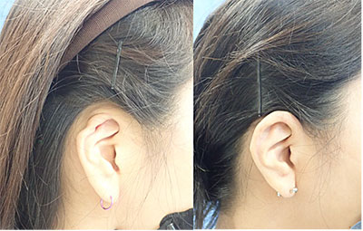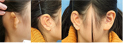 この手術の1週間後に局所麻酔で形成した耳介の修正手術を行います。余った皮膚や血流が悪くなった皮膚があれば修正手術で取り除きます。