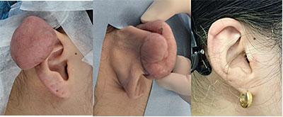 皮弁というテクニックを用いてできるだけ耳の変形を来さないように治療を行いますが、ケロイドの大きさによっては耳垂(耳たぶ)が健側より小さくなる可能性もあります。